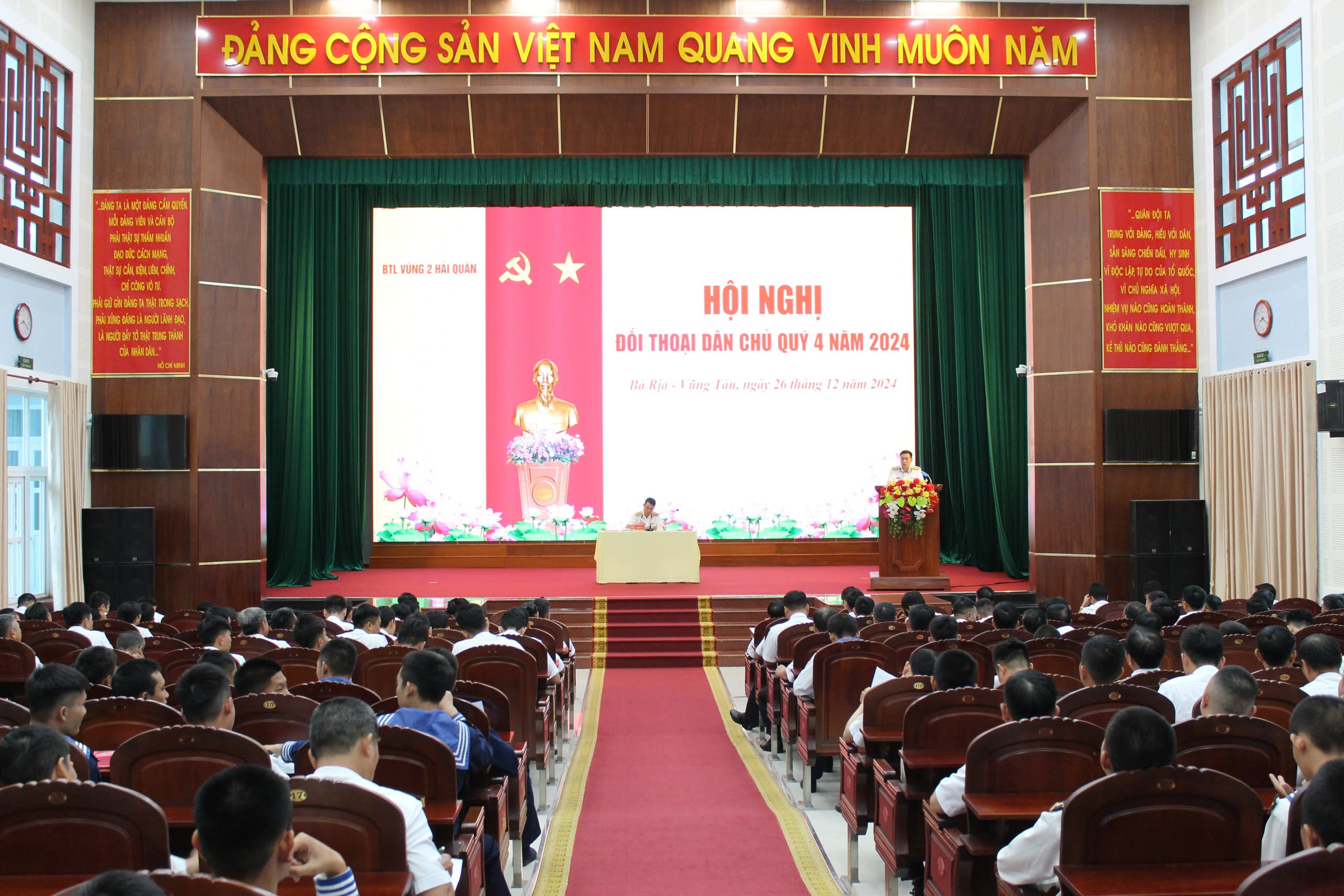 Sáng 26/12, tại tỉnh Đồng Nai và Bà Rịa - Vũng Tàu, Bộ Tư lệnh Vùng 2 Hải quân tổ chức sinh hoạt đối thoại dân chủ quý IV năm 2024 với cán bộ, chiến sĩ Trung tâm Huấn luyện và Lữ đoàn 171.