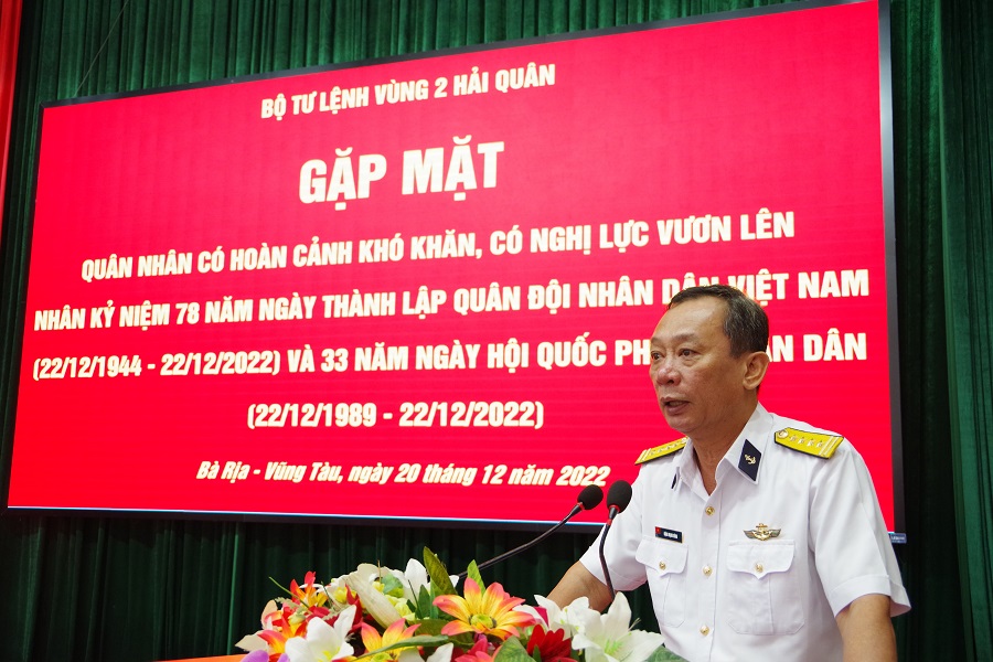 Ngày 20/12, tại TP. Vũng Tàu, tỉnh Bà Rịa - Vũng Tàu, Vùng 2 Hải quân tổ chức gặp mặt, tặng quà 80 quân nhân có hoàn cảnh đặc biệt khó khăn. Đại tá Đặng Mạnh Hùng, Phó Chính ủy; Đại tá Lê Bá Quân, Phó Tư lệnh, Tham mưu trưởng Vùng 2 tới dự.