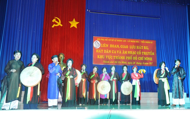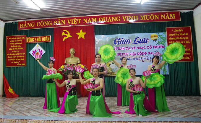 Tối 29-6, tại Căn cứ 696, Hội phụ nữ Vùng 2 Hải quân khu vực Đồng Nai đã tổ chức giao lưu hát ru, hát dân ca và âm nhạc cổ truyền