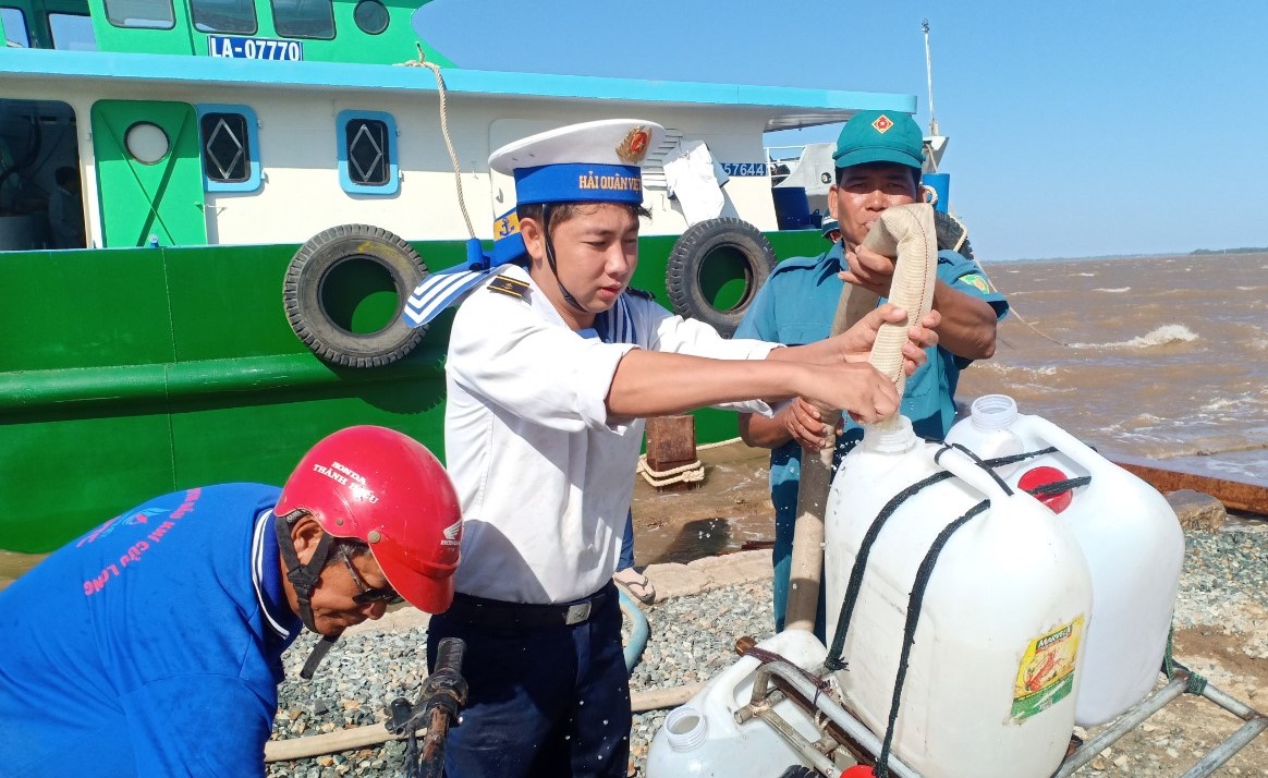 Vùng 2 Hải quân: Hỗ trợ nước ngọt giúp nhân dân vùng nhiễm mặn tỉnh Bến Tre