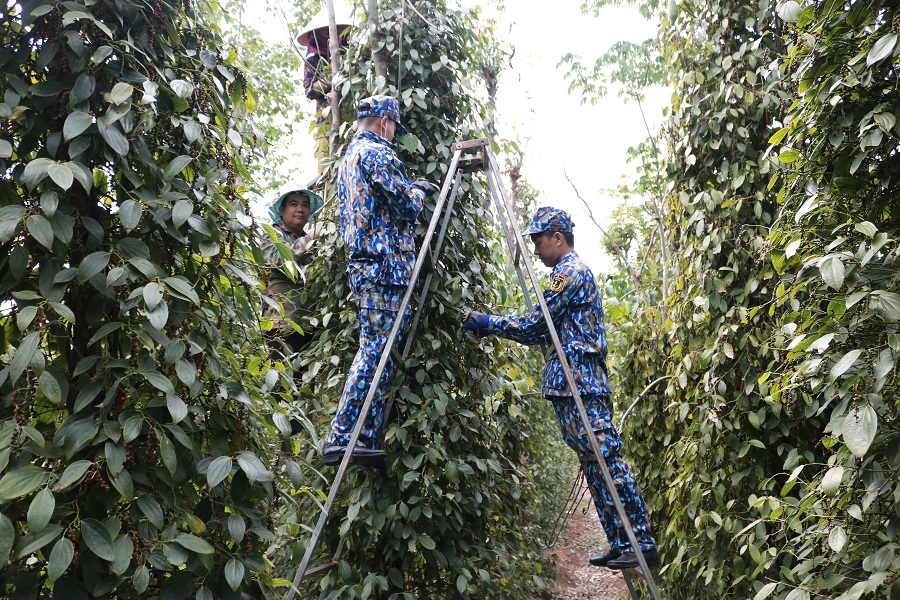 Cán bộ, chiến sĩ Vùng 2 tích cực giúp dân thu hoạch hồ tiêu
