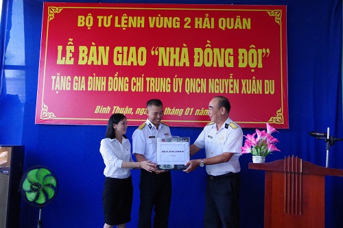 Trước đó, tại TP. Phan Thiết, tỉnh Bình Thuận, Vùng 2 Hải quân tổ chức khánh thành và bàn giao Nhà đồng đội cho gia đình đồng chí Trung úy Nguyễn Xuân Du, Nhân viên quân khí, Phòng Kỹ thuật, Lữ đoàn 681, Vùng 2 Hải quân.