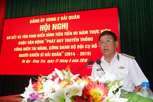 Ngày 17-5, tại Căn cứ quân sự Long Sơn (Thành phố Vũng Tàu) Đảng ủy Vùng 2 Hải quân tổ chức sơ kết và tôn vinh điển hình tiên tiến 5 năm thực hiện Cuộc vận động (CVĐ) “Phát huy truyền thống, cống hiến tài năng, xứng danh bộ đội Cụ Hồ - Người chiến sĩ Hải quân”. Chuẩn Đô đốc Nguyễn Phong Cảnh, Bí thư Đảng ủy, Chính ủy Vùng 2 chủ trì hội nghị.
