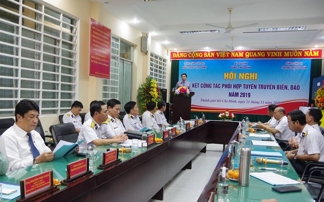 Trong năm 2019, Vùng 2 Hải quân đã phối hợp cùng Trung tâm GDQP-AN, Đại học Quốc gia TP. Hồ Chí Minh tổ chức thông tin chuyên đề về biển, đảo cho hơn 27 nghìn lượt cán bộ, giảng viên, viên chức và sinh viên Nhà trường. Vùng đã phối hợp với Tổng công ty Thương mại Sài Gòn tổ chức nhiều buổi nói chuyện chuyên đề về biển, đảo cho cán bộ, đảng viên và người lao động tại các doanh nghiệp thành viên của Tổng công ty như: Vissan, Siêu thị Tax, Trung tâm Phân phối Satra, Trung tâm ăn uống Satra, Công ty Cổ phần Dịch vụ-Thương mại quận 3, Công ty TNHH May mặc xuất khẩu Tân Châu, Công ty cổ phần Thực phẩm CJ Cầu Tre...