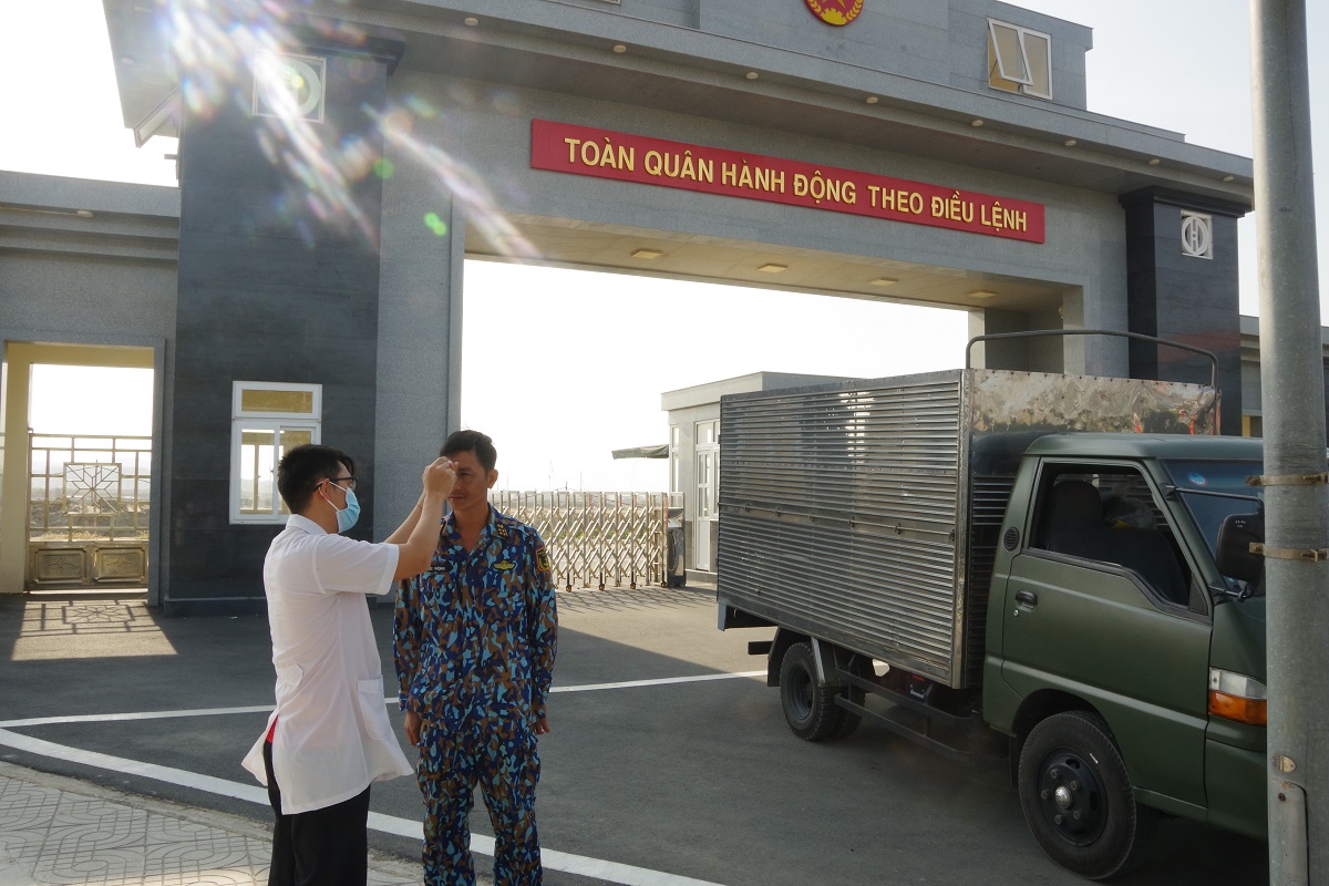 Đo thân nhiệt quân nhân ra, vào cổng đơn vị
