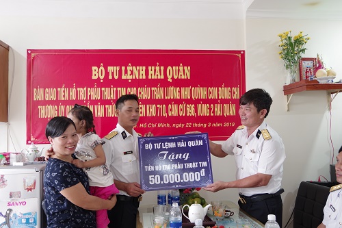 Vùng 2 Hải quân trao tiền hỗ trợ của Quân chủng cho con quân nhân bị bệnh tim bẩm sinh