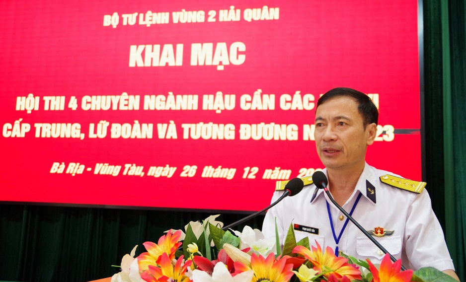 Ngày 26/12, tại TP. Vũng Tàu, tỉnh Bà Rịa – Vũng Tàu, Bộ Tư lệnh Vùng 2 Hải quân khai mạc Hội thi 4 chuyên ngành hậu cần các đơn vị cấp trung, lữ đoàn và tương đương năm 2023. Đại tá Phạm Quyết Tiến, Phó Tư lệnh Vùng dự và chỉ đạo.