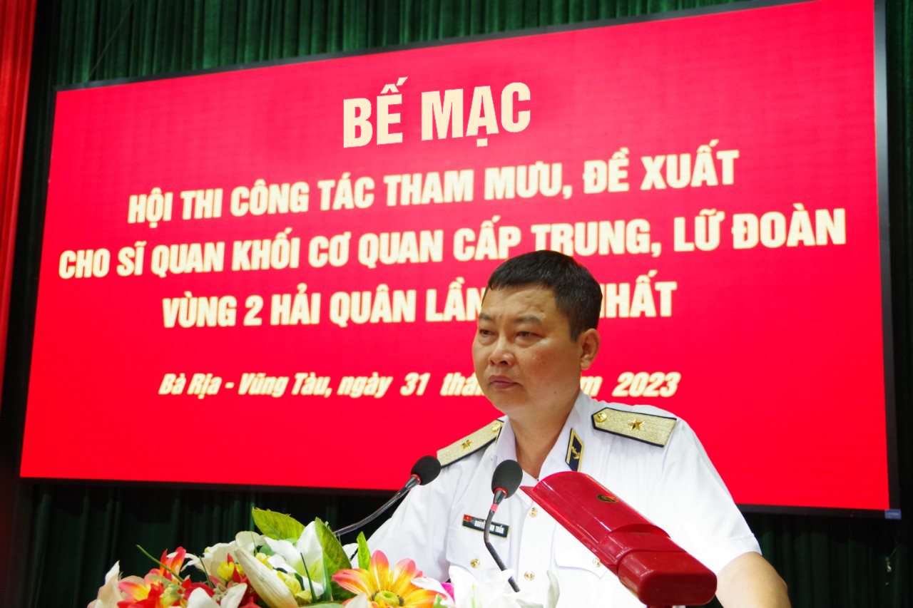 Phát biểu đánh giá kết quả hội thi, Chuẩn Đô đốc Nguyễn Anh Tuấn biểu dương các cơ quan Bộ Tư lệnh Vùng đã làm tốt công tác tổ chức. Các thí sinh tham gia hội thi đã tích cực, chủ động ôn tập; cơ bản nắm chắc kiến thức chuyên môn, xử trí tình huống theo nguyên tắc; chấp hành nghiêm quy chế, quy định hội thi; liên hệ sát thực tiễn trên cương vị, chức trách đảm nhiệm.