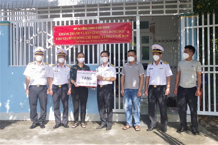 Sáng 20/12, tại TP. Phan Thiết, tỉnh Bình Thuận, Vùng 2 Hải quân tổ chức khánh thành, bàn giao nhà đồng đội cho gia đình Thiếu tá Phan Thế Hậu, Chính trị viên Tiểu đoàn Thông tin 67, Phòng Tham mưu Vùng 2.