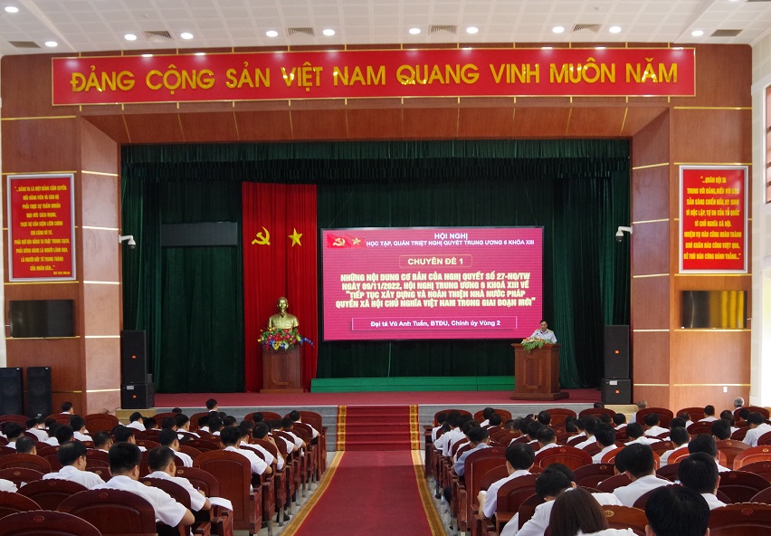 Phát biểu khai mạc, Đại tá Vũ Anh Tuấn yêu cầu cán bộ, đảng viên nêu cao tinh thần trách nhiệm, nghiêm túc học tập, nắm chắc nội dung, vận dụng sát với điều kiện thực tiễn, góp phần đưa các nghị quyết của Trung ương vào cuộc sống…