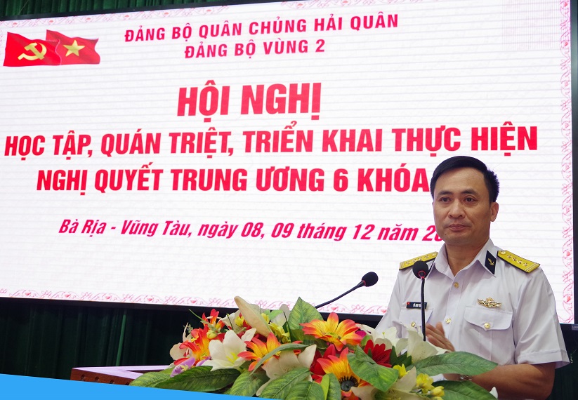 Sáng 8/12, tại TP. Vũng Tàu, tỉnh Bà Rịa-Vũng Tàu, Thường vụ Đảng ủy Vùng 2 Hải quân tổ chức Hội nghị nghiên cứu, học tập, quán triệt và triển khai thực hiện Nghị quyết Hội nghị lần thứ sáu, Ban Chấp hành Trung ương Đảng khóa XIII trong Đảng bộ Vùng. Đại tá Vũ Anh Tuấn, Bí thư Đảng ủy, Chính ủy Vùng chủ trì hội nghị.