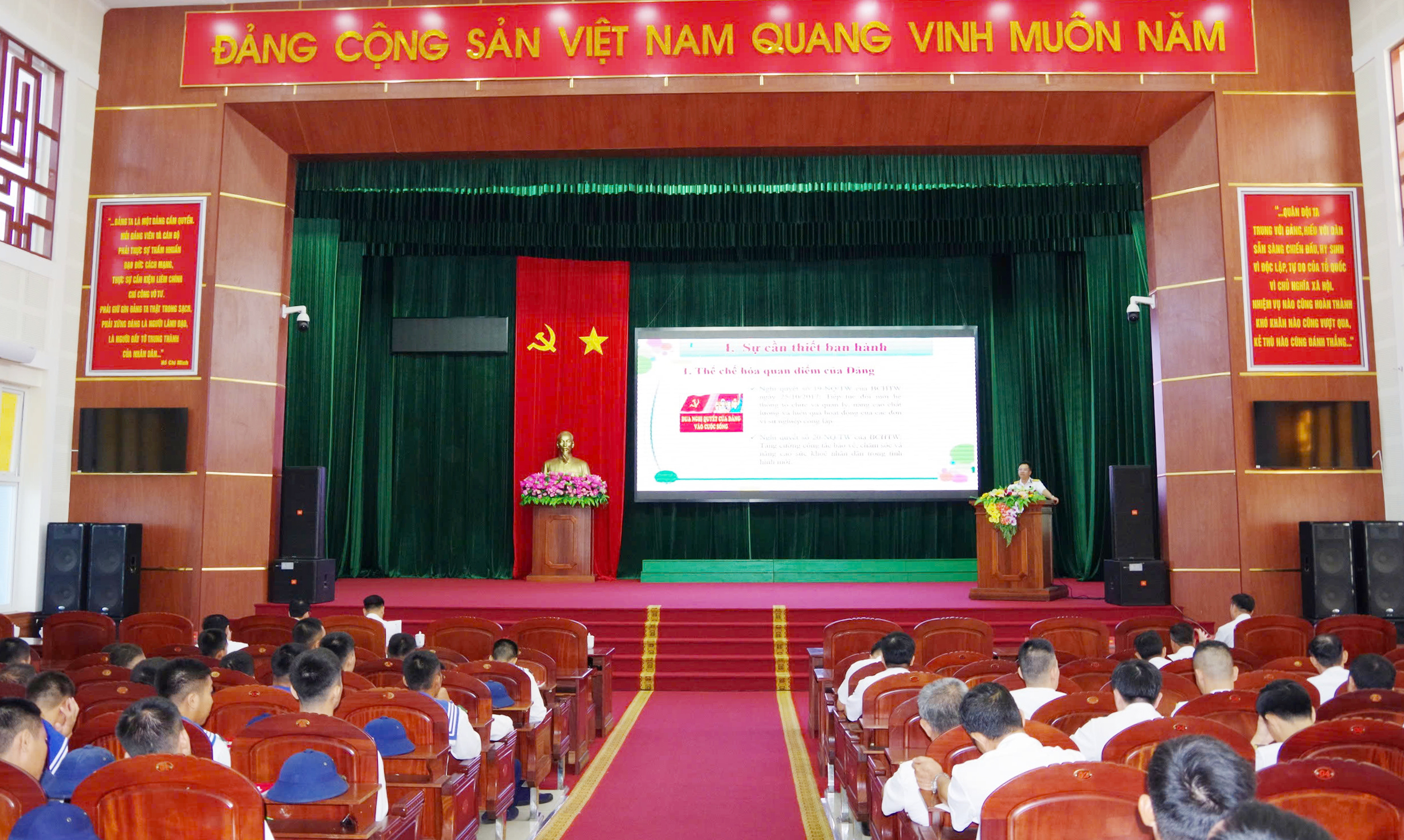Báo cáo viên của Tòa án Quân sự khu vực Quân chủng Hải quân đã giới thiệu tới cán bộ, chiến sĩ 2 chuyên đề: Nội dung cơ bản của Luật Khám bệnh, chữa bệnh năm 2023; Quy định của pháp luật về phòng cháy, chữa cháy và các giải pháp bảo đảm phòng cháy, chữa cháy và tuyên truyền về phòng ngừa tội phạm mua bán người.