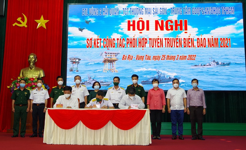 Chiều 25/3, tại thành phố Vũng Tàu, Bộ Tư lệnh Vùng 2 Hải quân, Tổng công ty Thương mại Sài Gòn và Trung tâm Giáo dục Quốc phòng & an ninh, Đại học Quốc gia TP. Hồ Chí Minh tổ chức Hội nghị sơ kết 1 năm phối hợp tuyên truyền biển, đảo.