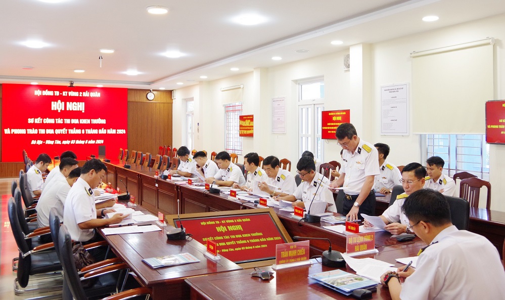 Ngày 3/6, tại thành phố Vũng Tàu, tỉnh Bà Rịa – Vũng Tàu, Hội đồng thi đua-khen thưởng (TĐKT) Vùng 2 Hải quân tổ chức Hội nghị sơ kết công tác TĐKT và phong trào thi đua quyết thắng (TĐQT) 6 tháng đầu năm 2024. Đại tá Trần Mạnh Chiến, Bí thư Đảng ủy, Chính ủy, Chủ tịch Hội đồng TĐKT Vùng chủ trì.