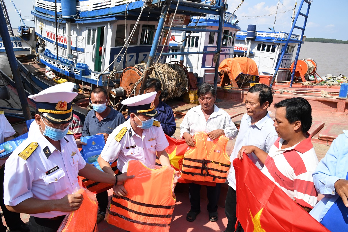 Đoàn công tác do Đại tá Nguyễn Anh Tuấn, Tư lệnh Vùng làm trưởng đoàn đã gặp gỡ trực tiếp bà con ngư dân Sóc Trăng để trao đổi và thông tin về các hiệp định phân định ranh giới trên biển giữa Việt Nam với các nước trong khu vực; các văn bản quy phạm pháp luật của Việt Nam về khai thác, đánh bắt hải sản an toàn, bền vững, gắn với bảo vệ môi trường, chống khai thác bất hợp pháp. Đoàn cũng cung cấp cho ngư dân vị trí các âu tàu của Hải quân bảo đảm hậu cần, kỹ thuật và các tần số thông tin liên lạc khi cần thiết.