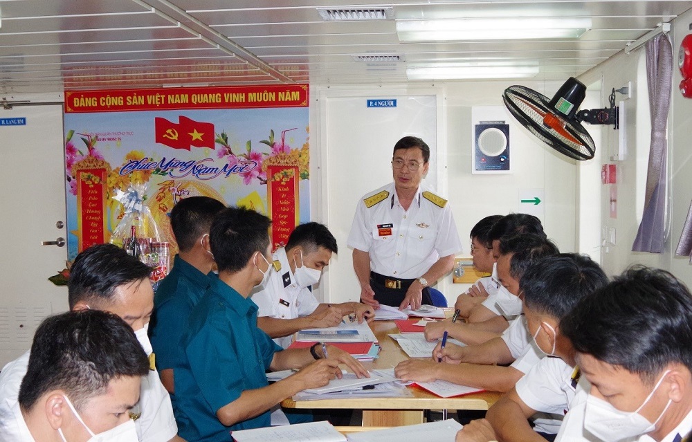 Nhân dịp chuẩn bị bước sang năm mới Nhâm Dần 2022, Đại tá Phạm Quyết Tiến tặng quà và chúc cán bộ, nhân viên Hải đội sức khỏe, hoàn thành tốt nhiệm vụ được giao.