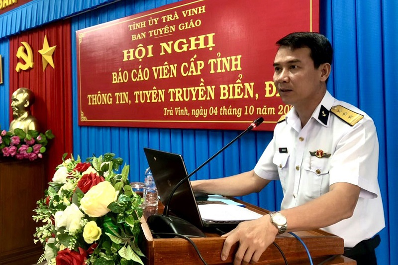 Sáng 4/10, tại TP. Trà Vinh (tỉnh Trà Vinh), Bộ Tư lệnh Vùng 2 Hải quân phối hợp với Ban Tuyên giáo Tỉnh ủy Trà Vinh tổ chức Hội nghị báo cáo viên cấp tỉnh thông tin, tuyên truyền về biển, đảo.
