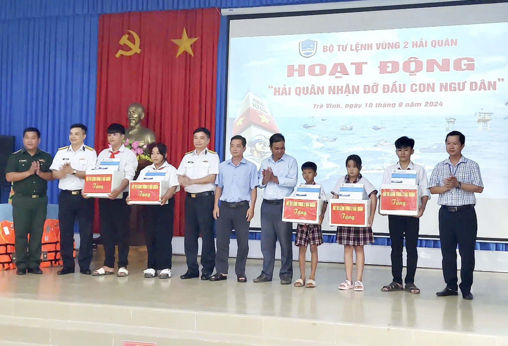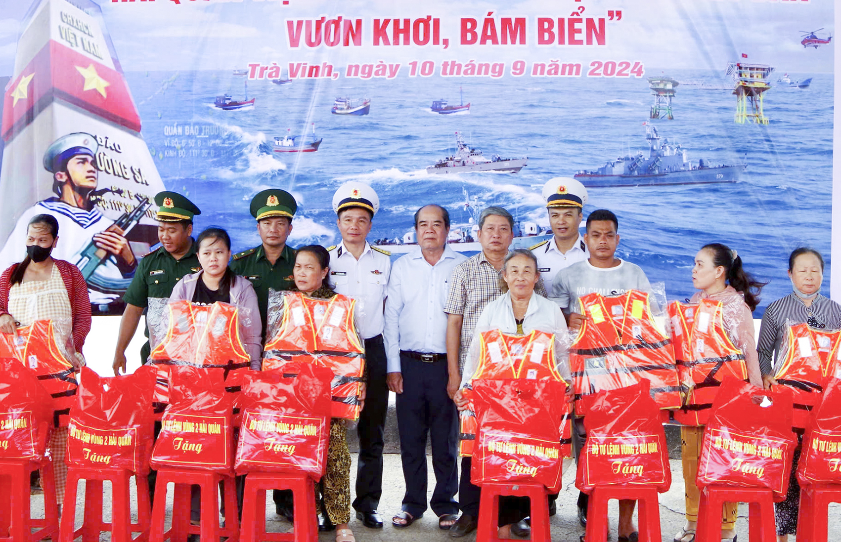 Dịp này, Vùng 2 đã tặng 400 lá cờ Tổ quốc, 500 bộ tài liệu tuyên truyền, 150 áo phao cho các tàu cá và trao 20 phần quà tổng trị giá 10 triệu đồng tặng gia đình ngư dân có hoàn cảnh đặc biệt khó khăn.