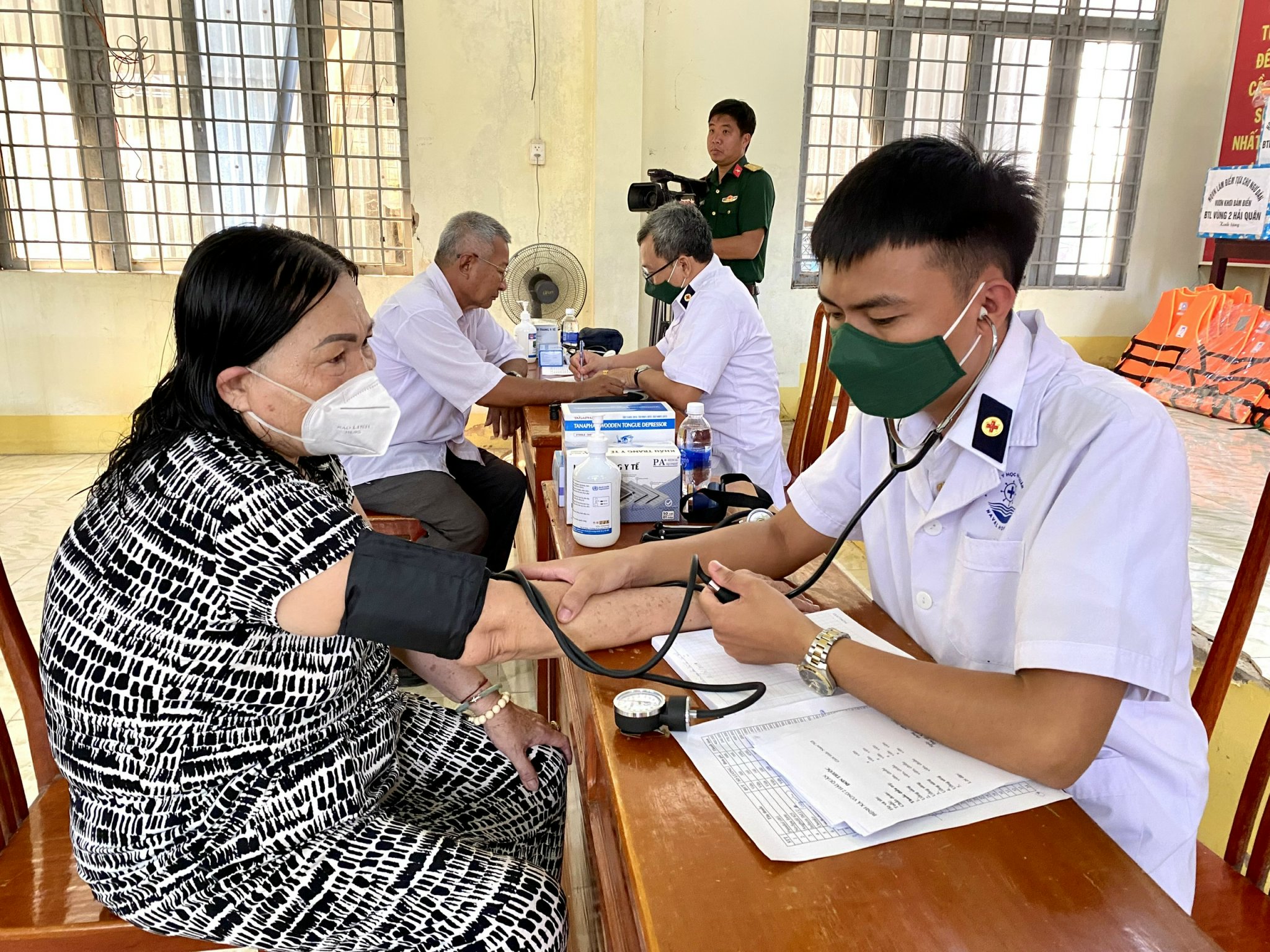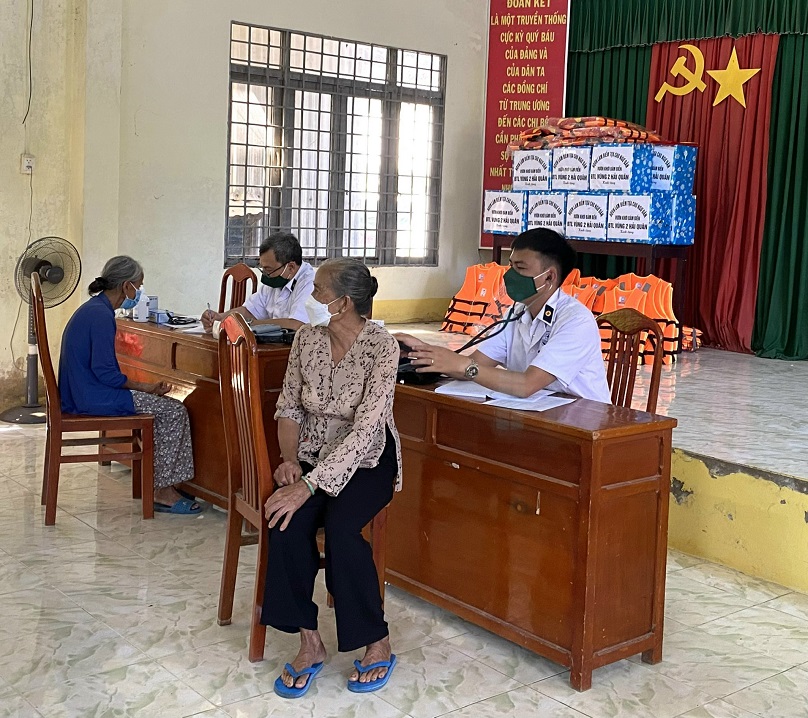 Dịp này, quân y Vùng 2 đã tổ chức khám sức khỏe, cấp thuốc miễn phí cho hơn 100 bà con ngư dân.