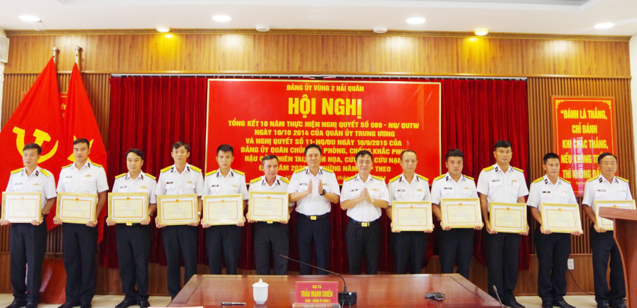 Nhân dịp này, Đảng uỷ Vùng 2 đã khen thưởng 7 tập thể, 11 cá nhân có thành tích xuất sắc, tiêu biểu trong thực hiện Nghị quyết số 689 của Quân ủy Trung ương và Nghị quyết số 11 của Đảng uỷ Quân chủng.