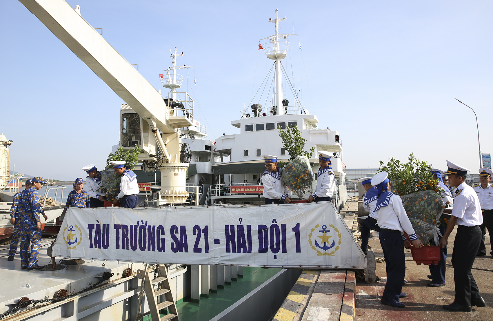 Đoàn công tác mang hơn 500 phần quà và các loại nhu yếu phẩm theo tiêu chuẩn Tết của Bộ Quốc phòng, Quân chủng Hải quân, Bộ Tư lệnh Vùng 2 và các địa phương, cơ quan, doanh nghiệp tặng cán bộ, chiến sĩ Nhà giàn DK1, quân dân huyện Côn Đảo và các lực lượng trực bảo vệ chủ quyền trên biển trong dịp Tết Quý Mão 2023.