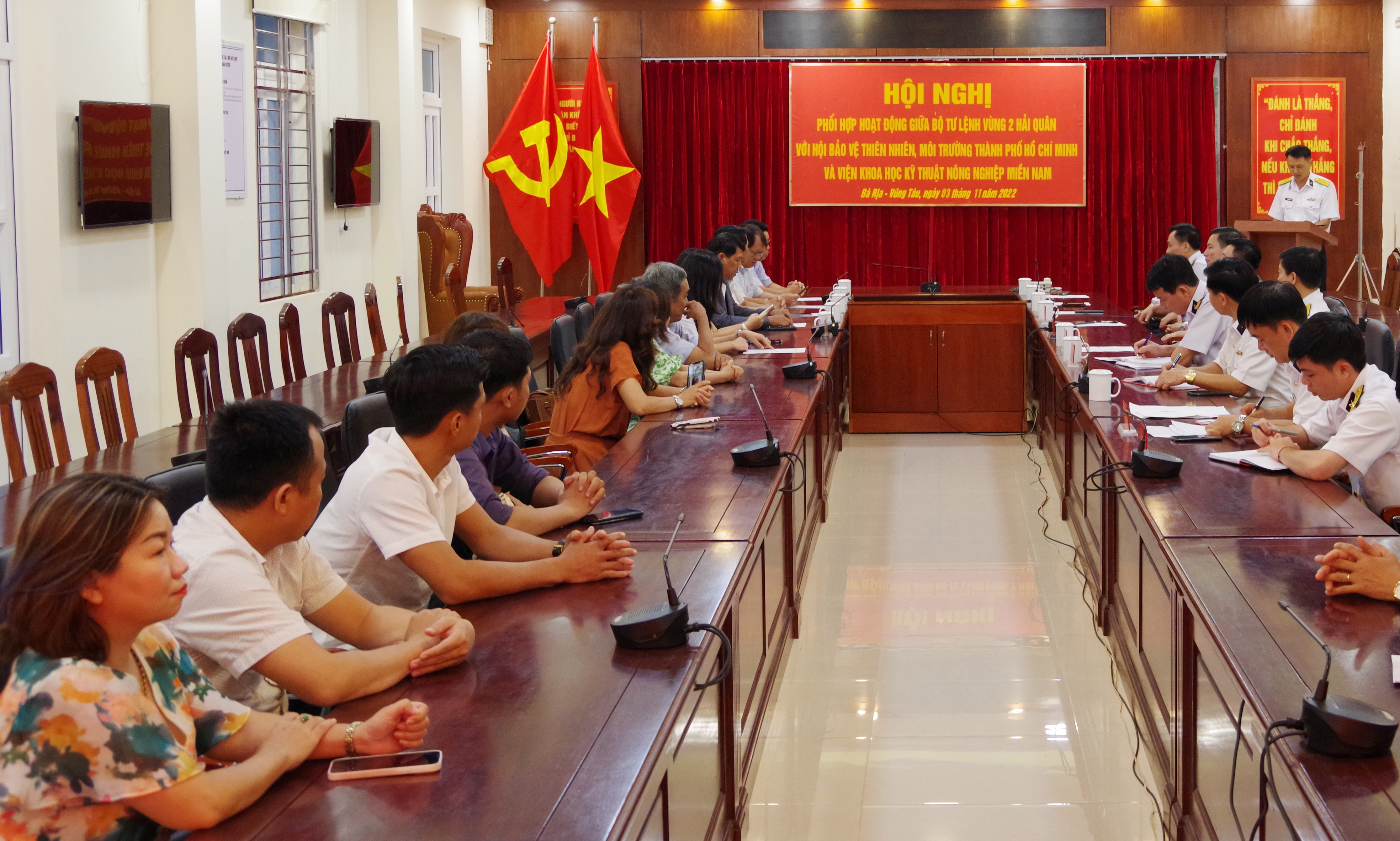 Ngày 3/11, tại TP. Vũng Tàu, tỉnh Bà Rịa-Vũng Tàu, Bộ Tư lệnh Vùng 2 Hải quân phối hợp với Hội Bảo vệ thiên nhiên, môi trường TP. Hồ Chí Minh và Viện Khoa học kỹ thuật nông nghiệp miền Nam tổ chức hội nghị phối hợp hoạt động.