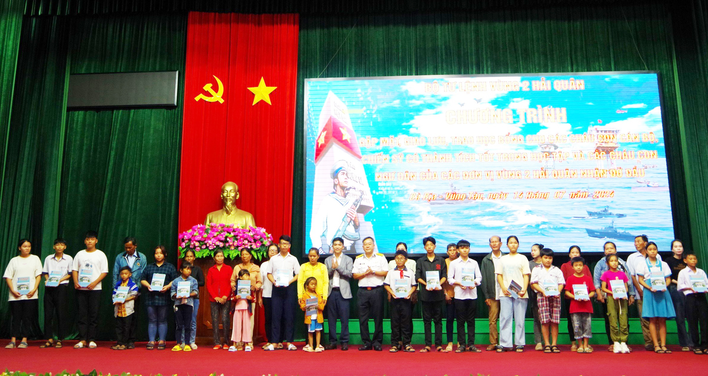 Chiều 14/7, tại TP. Vũng Tàu, tỉnh Bà Rịa - Vũng Tàu, Bộ Tư lệnh Vùng 2 Hải quân phối hợp với Công ty Cổ phần Tôn Đông Á tổ chức chương trình gặp mặt, giao lưu, trao học bổng cho các cháu là con cán bộ, nhân viên có thành tích học tập tốt và các cháu là con ngư dân được Vùng 2 Hải quân nhận đỡ đầu.