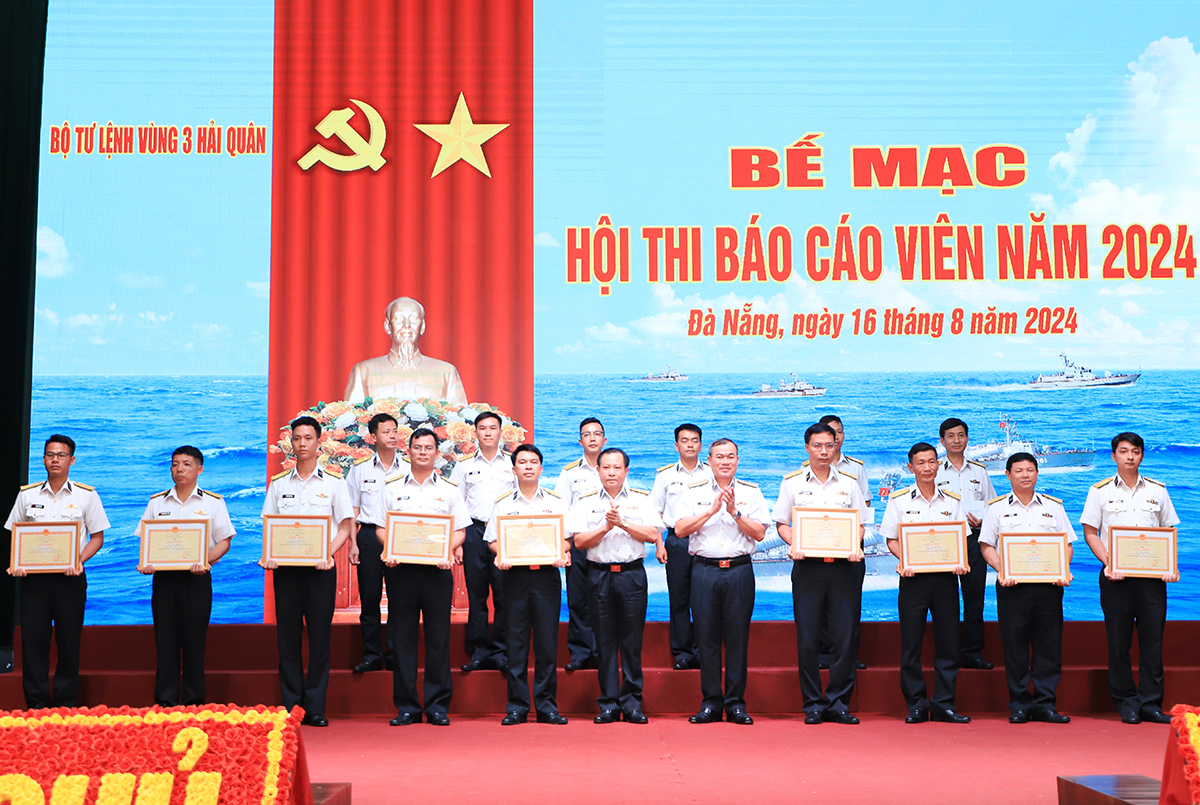 Chiều 16/8, tại Đà Nẵng, Vùng 3 Hải quân tổ chức bế mạc Hội thi báo cáo viên (BCV) năm 2024. Chuẩn Đô đốc Nguyễn Đăng Tiến, Bí thư Đảng uỷ, Chính uỷ Vùng dự và chủ trì. Cùng dự có Đại tá Nguyễn Thiên Quân, Tư lệnh Vùng.