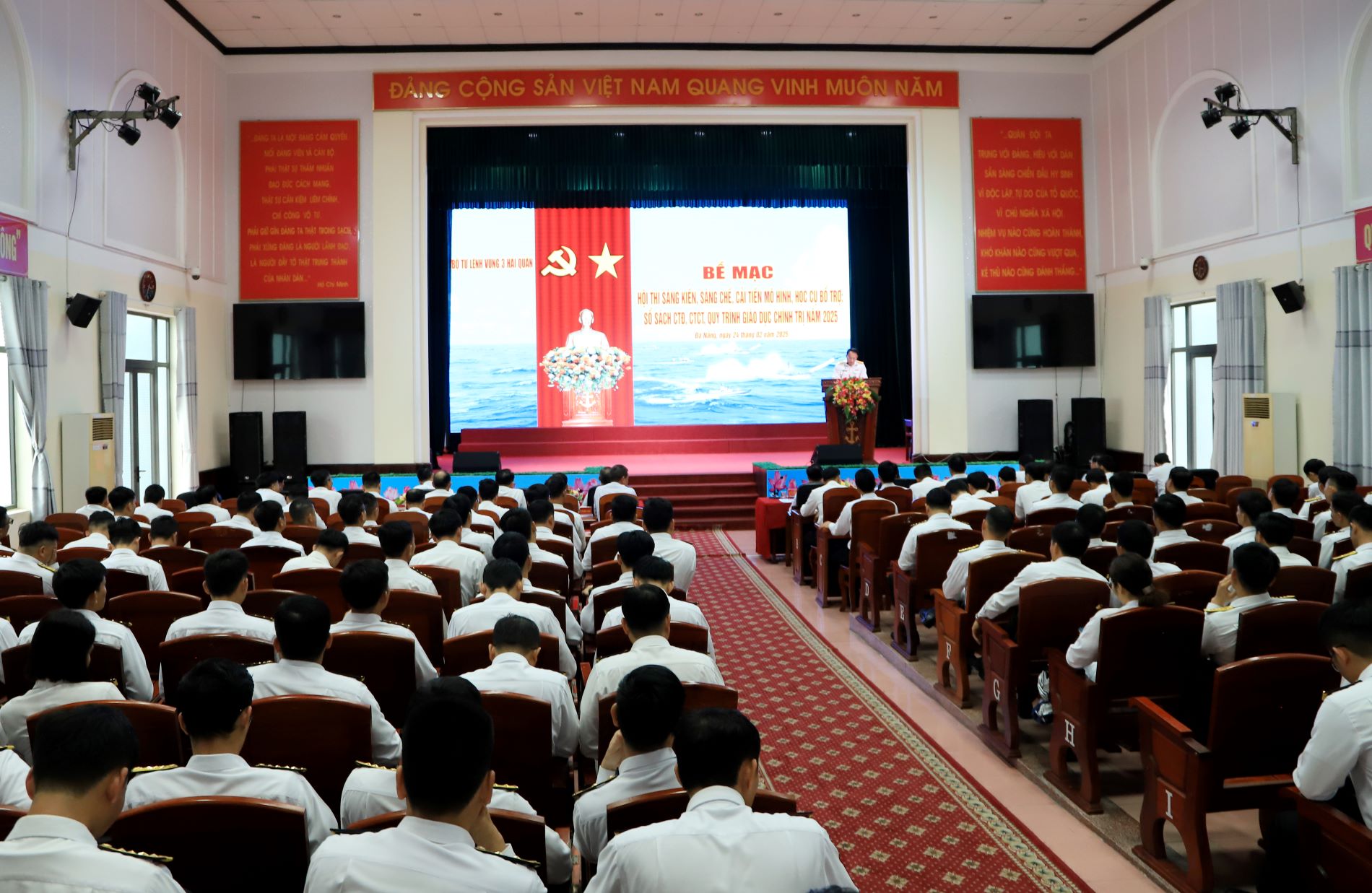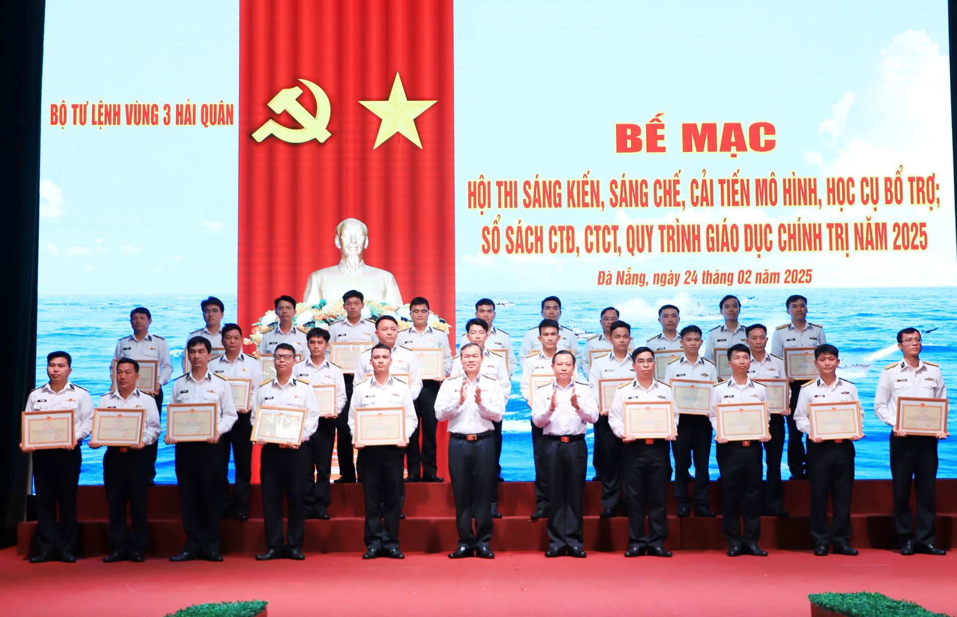 Chiều 24/2, tại Đà Nẵng, Bộ Tư lệnh Vùng 3 Hải quân tổ chức bế mạc Hội thi sáng kiến, sáng chế, cải tiến mô hình học cụ bổ trợ; sổ sách CTĐ, CTCT và quy trình giáo dục chính trị năm 2025. Chuẩn Đô đốc Nguyễn Thiên Quân, Tư lệnh Vùng dự, chỉ đạo.