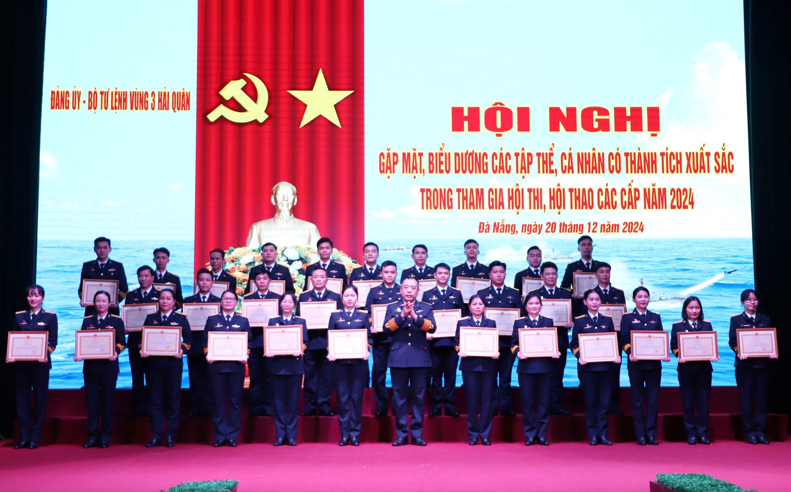 Sáng 20/12, tại Đà Nẵng, Bộ Tư lệnh Vùng 3 Hải quân tổ chức Hội nghị gặp mặt, biểu dương các tập thể, cá nhân đạt thành tích xuất sắc trong tham gia hội thi, hội thao các cấp năm 2024. Chuẩn Đô đốc Nguyễn Thiên Quân, Tư lệnh Vùng chủ trì.
