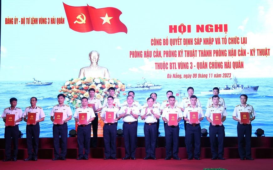 Sáng 9/11, tại TP. Đà Nẵng, Vùng 3 Hải quân tổ chức Hội nghị công bố quyết định sáp nhập và tổ chức lại Phòng Hậu cần, Phòng Kỹ thuật thành Phòng Hậu cần-Kỹ thuật. Đại tá Nguyễn Thiên Quân, Tư lệnh Vùng chủ trì. Tham dự hội nghị có Chuẩn Đô đốc Nguyễn Đăng Tiến, Chính ủy Vùng cùng các đồng chí thủ trưởng Bộ Tư lệnh Vùng.