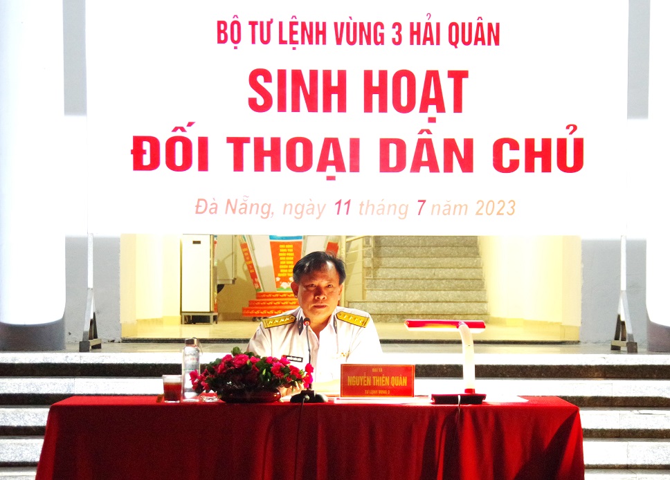 Tối 11/7, tại TP. Đà Nẵng, Vùng 3 Hải quân tổ chức đối thoại dân chủ giữa thủ trưởng Bộ Tư lệnh Vùng với cán bộ, chiến sĩ Lữ đoàn 172. Đại tá Nguyễn Thiên Quân, Tư lệnh Vùng dự, chủ trì.