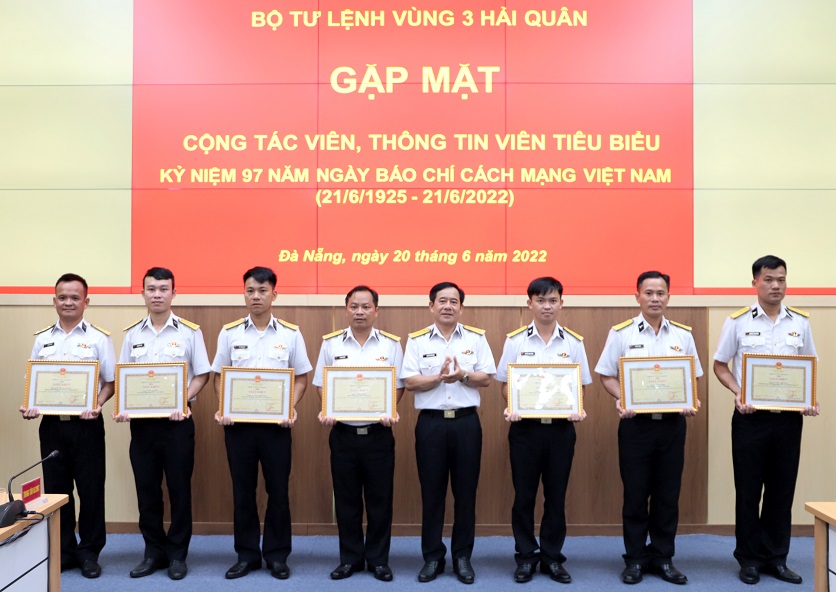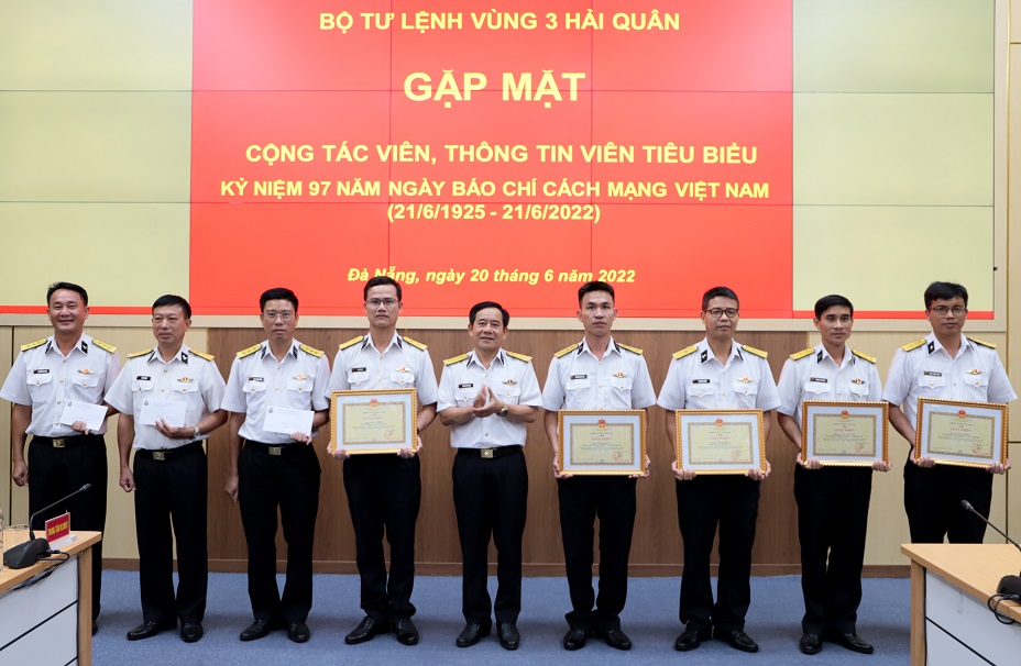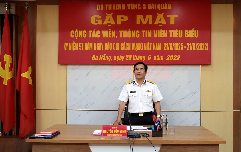 Chiều 20/6, tại Đà Nẵng, Bộ Tư lệnh Vùng 3 Hải quân tổ chức gặp mặt cộng tác viên, thông tin viên tiêu biểu nhân dịp kỷ niệm 97 năm Ngày báo chí cách mạng Việt Nam (21/6/1925 – 21/6/2022). Đại tá Nguyễn Hữu Minh, Phó Chính ủy Vùng dự và chủ trì.