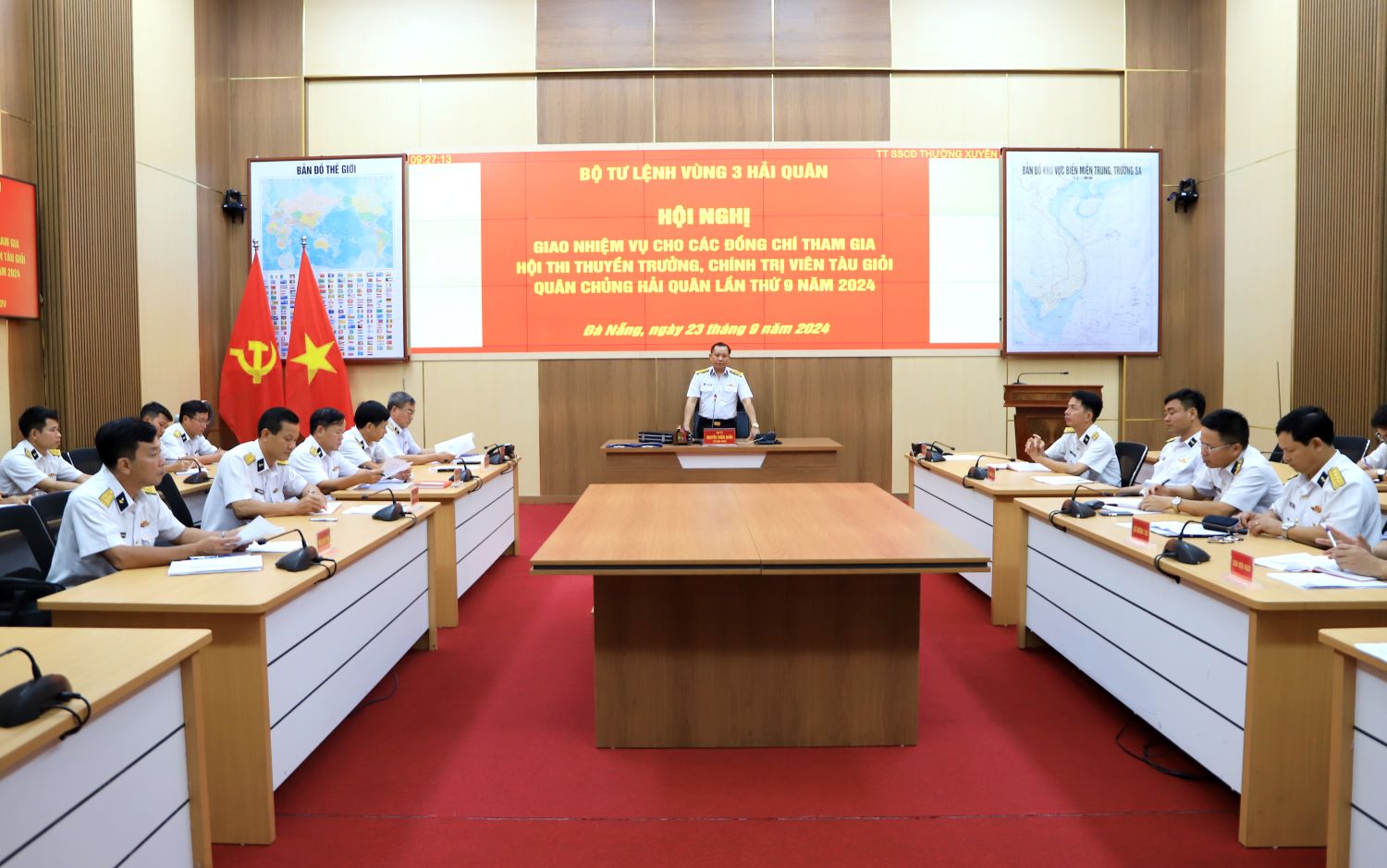 Sáng 23/9, tại Đà Nẵng, Bộ Tư lệnh Vùng 3 Hải quân tổ chức Hội nghị giao nhiệm vụ cho các đồng chí tham gia Hội thi thuyền trưởng, chính trị viên giỏi Quân chủng Hải quân năm 2024. Đại tá Nguyễn Thiên Quân, Tư lệnh Vùng chủ trì; cùng dự có Chuẩn Đô đốc Nguyễn Đăng Tiến, Bí thư Đảng uỷ, Chính uỷ Vùng.