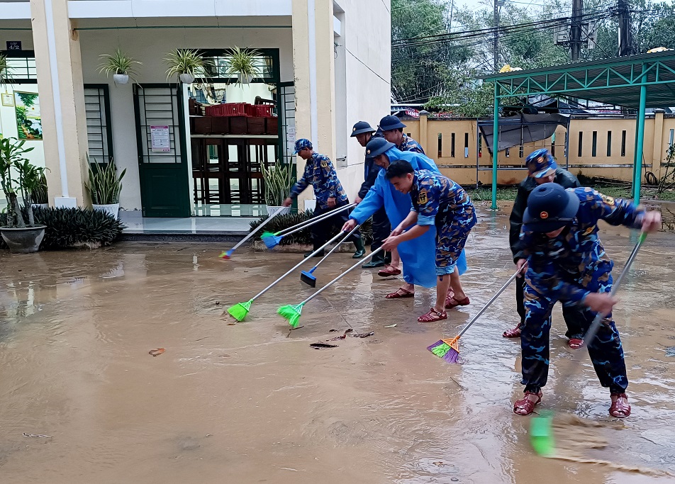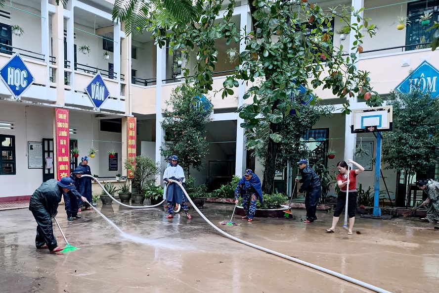 Ngay sau khi mưa giảm, nước rút, Vùng 3 đã điều động cán bộ, chiến sĩ Trung tâm Bảo đảm kỹ thuật phối hợp với cán bộ, giáo viên nhà trường tổng dọn vệ sinh khuôn viên sân trường, lau chùi các trang thiết bị phòng học để học sinh sớm trở lại học tập bình thường.