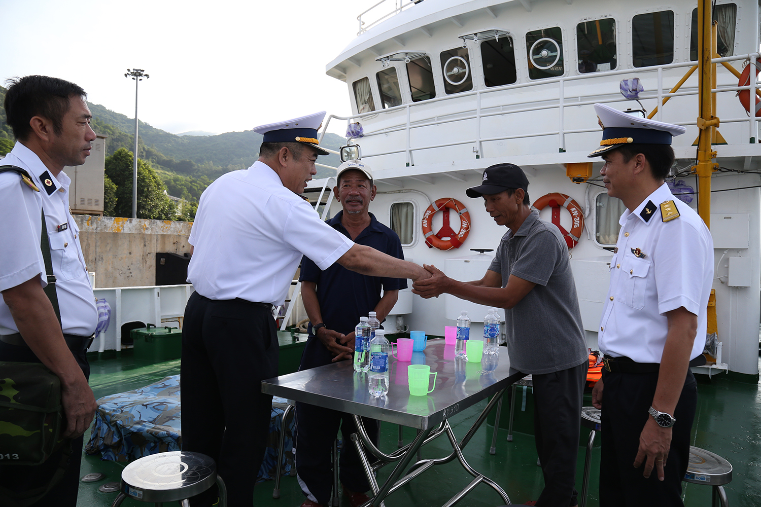Cán bộ, chiến sĩ Tàu 952 đã kiểm tra sức khỏe, chăm sóc y tế, sau đó đưa hai ngư dân sang Tàu 305 thuộc Vùng 3 Hải quân để đưa vào bờ an toàn.