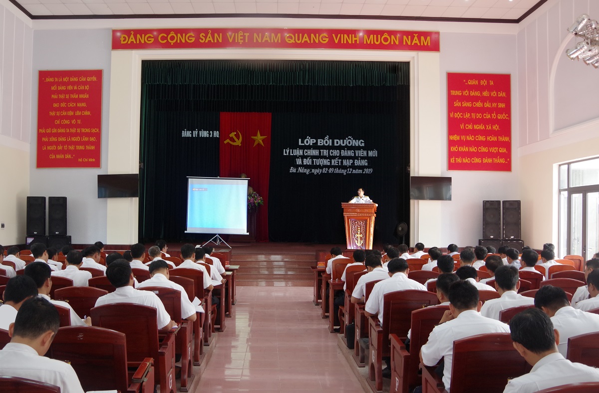 Sáng 2-12, tại Đà Nẵng, Vùng 3 Hải quân tổ chức lớp bồi dưỡng lý luận chính trị cho đảng viên mới 2019 và đối tượng kết nạp đảng năm 2020. Tham gia lớp bồi dưỡng lý luận chính trị đợt này có 82 đồng chí đảng viên mới và 45 quần chúng ưu tú dự nguồn kết nạp đảng đến từ các cơ quan, đơn vị trong toàn Vùng.