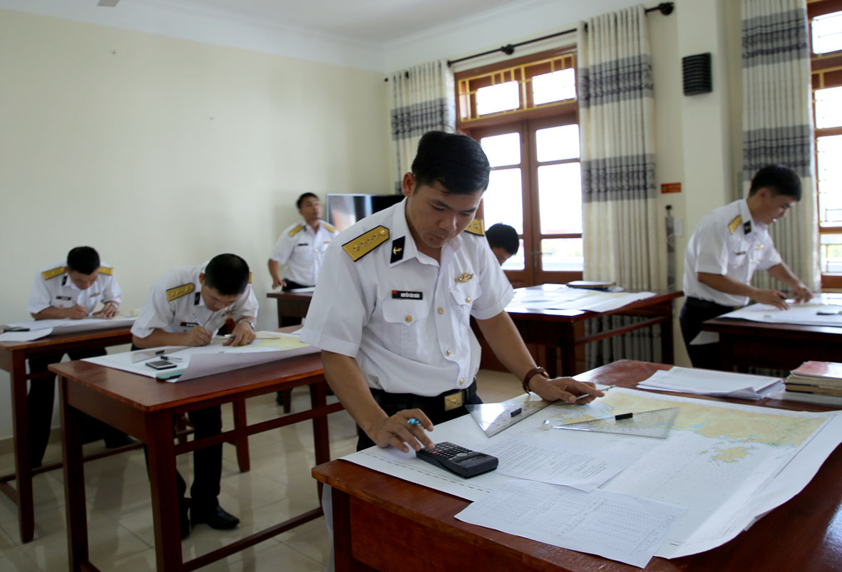 Các thuyền trưởng thực hiện nội dung thi hàng hải, tác nghiệp hải đồ, điều động tàu tránh va