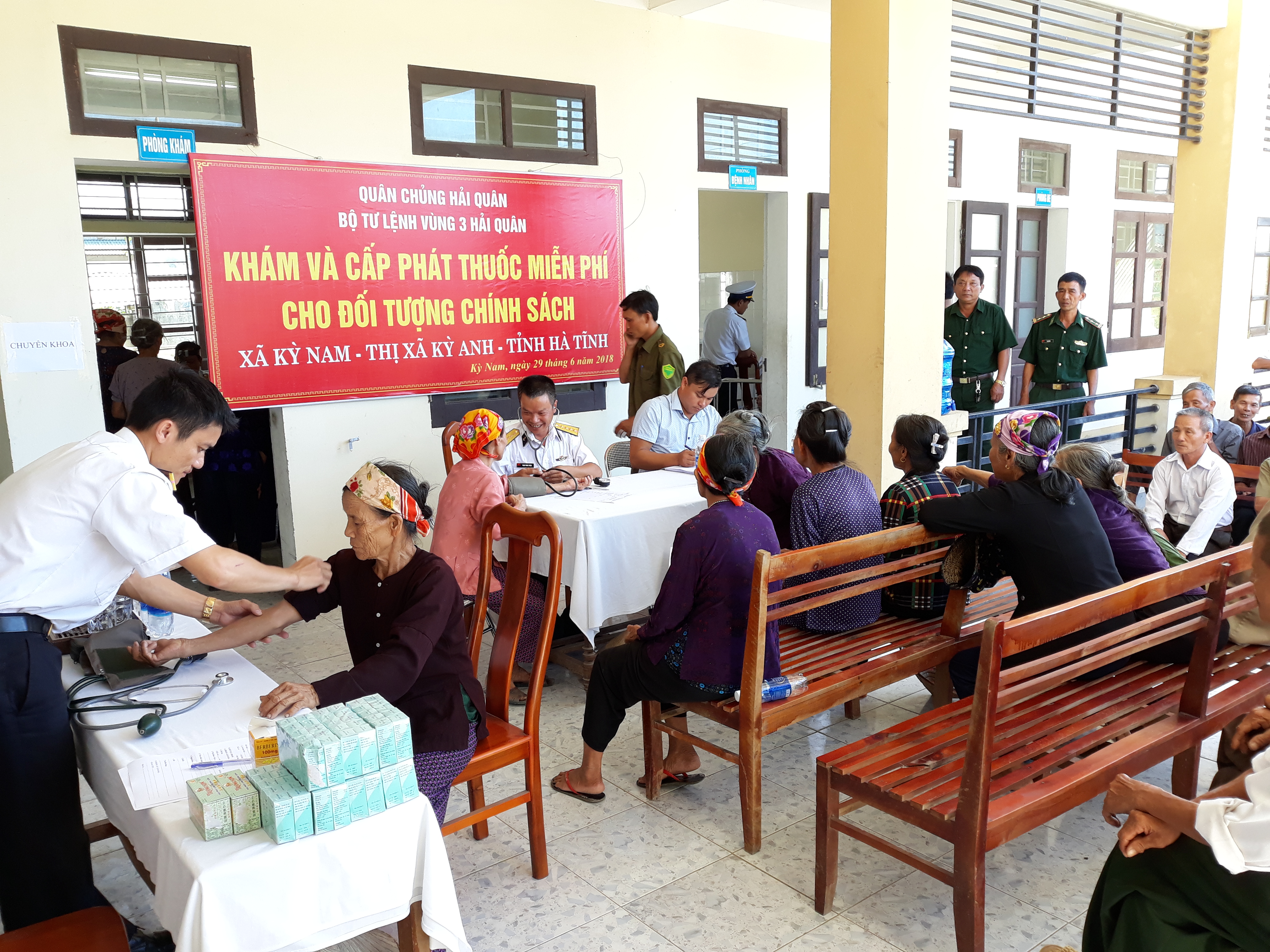 Từ ngày 25 đến 30-6, đoàn công tác của cơ quan Quân y Vùng 3 Hải quân đã tổ chức khám bệnh, cấp thuốc miễn phí cho 180 đối tượng chính sách tại một số xã của tỉnh Hà Tĩnh và tỉnh Quảng Bình.