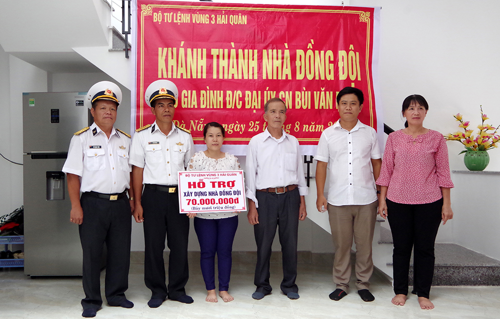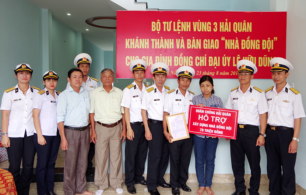 Trước đó, ngày 23-8, tại tổ 58, phường Hòa Khánh Nam, quận Liên Chiểu, TP. Đà Nẵng, Vùng 3 Hải quân đã phối hợp với chính quyền địa phương tổ chức khánh thành và bàn giao nhà đồng đội cho gia đình Đại úy Lê Hữu Dũng, Phó trưởng ngành, Trạm kỹ thuật, Lữ đoàn 680, Vùng 3 Hải quân.