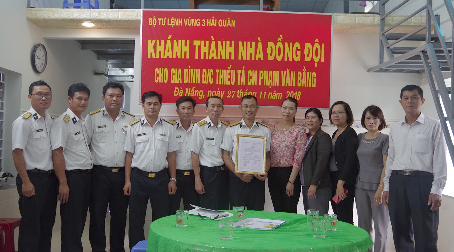 Sáng 27-11, tại tổ 99 (phường Thọ Quang, quận Sơn Trà, TP. Đà Nẵng), Vùng 3 Hải quân đã phối hợp với chính quyền địa phương tổ chức khánh thành và bàn giao nhà đồng đội cho gia đình Thiếu tá CN Phạm Văn Bằng, Thợ sửa chữa ra đa Trạm 62, Phòng Kỹ thuật, Vùng 3 Hải quân.