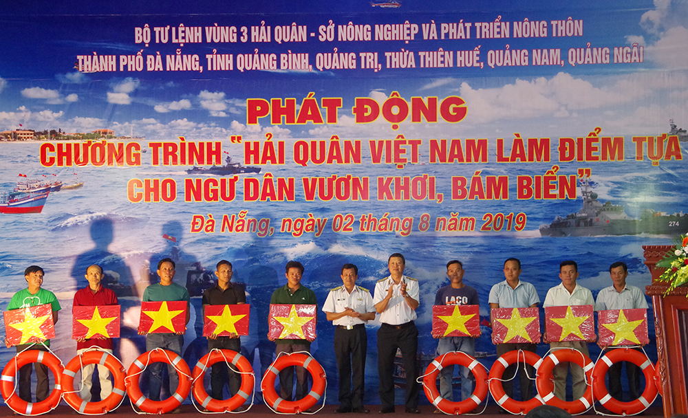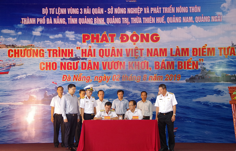 Chiều 2-8, tại Đà Nẵng, Bộ Tư lệnh Vùng 3 Hải quân phối hợp với Sở Nông nghiệp và Phát triển Nông thôn TP. Đà Nẵng và các tỉnh Quảng Bình, Quảng Trị, Thừa Thiên Huế, Quảng Nam, Quảng Ngãi phát động Chương trình “Hải quân Việt Nam làm điểm tựa cho ngư dân vươn khơi, bám biển”.
