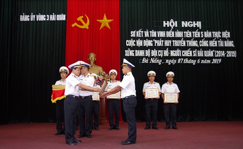 Sáng 7-6, tại Đà Nẵng, Vùng 3 Hải quân tổ chức Hội nghị sơ kết và tôn vinh điển hình tiên tiến 5 năm thực hiện Cuộc vận động (CVĐ) “Phát huy truyền thống, cống hiến tài năng, xứng danh Bộ đội Cụ Hồ - Người chiến sĩ Hải quân” (2014-2019). Chuẩn Đô đốc Mai Trọng Định, Bí thư Đảng ủy, Chính ủy Vùng 3 chủ trì.