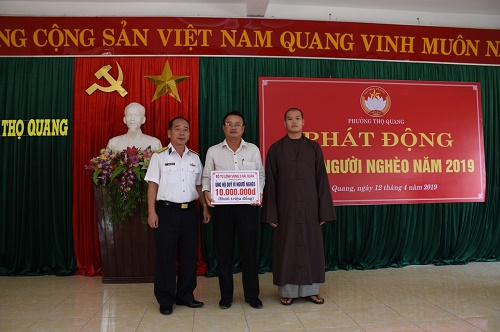 Thay mặt lãnh đạo Vùng 3 Hải quân, Đại tá Huỳnh Trọng Thủy, Phó Chính ủy Vùng đã trao tặng số tiền 10 triệu đồng ủng hộ Quỹ “Vì người nghèo” phường Thọ Quang năm 2019.