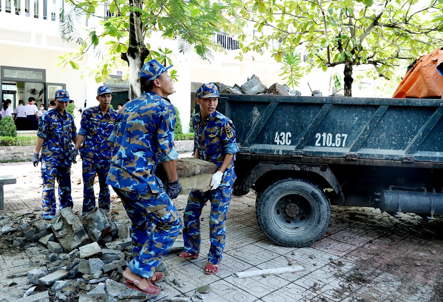 Ngày 8/10, Trung tâm Huấn luyện chuyên môn kỹ thuật Vùng 3 Hải quân đã cử cán bộ, chiến sĩ đến hỗ trợ Trường THCS Hoàng Sa, phường Thọ Quang, quận Sơn Trà, TP. Đà Nẵng tổng dọn vệ sinh, cải tạo lại khuôn viên sân trường.