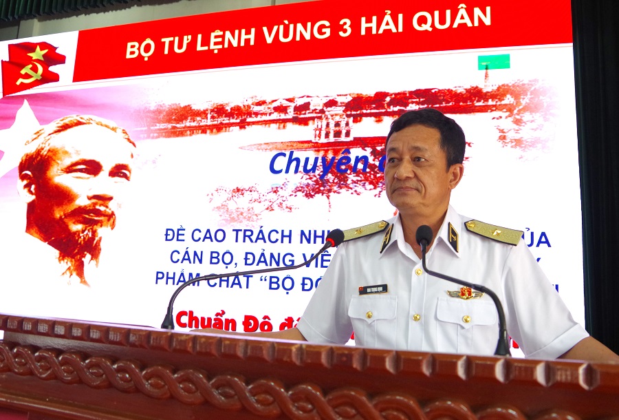 Tại hội nghị, Chuẩn Đô đốc Mai Trọng Định, Bí thư Đảng ủy, Chính ủy Vùng và Đại tá Phạm Đình Thành, Chủ nhiệm Chính trị Vùng giới thiệu các chuyên đề: Đề cao trách nhiệm nêu gương của cán bộ, đảng viên trong phát huy phẩm chất “Bộ đội Cụ Hồ” thời kỳ mới; Phát huy phẩm chất “Bộ đội Cụ Hồ” kiên quyết chống chủ nghĩa cá nhân và văn hóa trên không gian mạng thực trạng và một số giải pháp tham gia mạng xã hội ở Vùng 3 Hải quân.