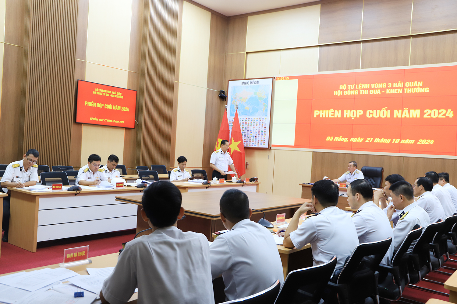 Chiều 21/10, tại Đà Nẵng, Bộ Tư lệnh Vùng 3 Hải quân tổ chức họp Hội đồng thi đua khen thưởng (TĐKT) phiên cuối năm 2024. Chuẩn Đô đốc Nguyễn Đăng Tiến, Bí thư Đảng uỷ, Chính ủy, Chủ tịch Hội đồng TĐKT Vùng chủ trì.
