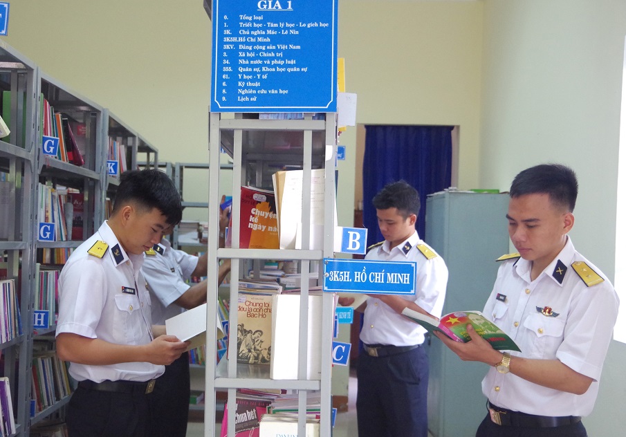 Quân nhân tìm đọc sách trong thư viện