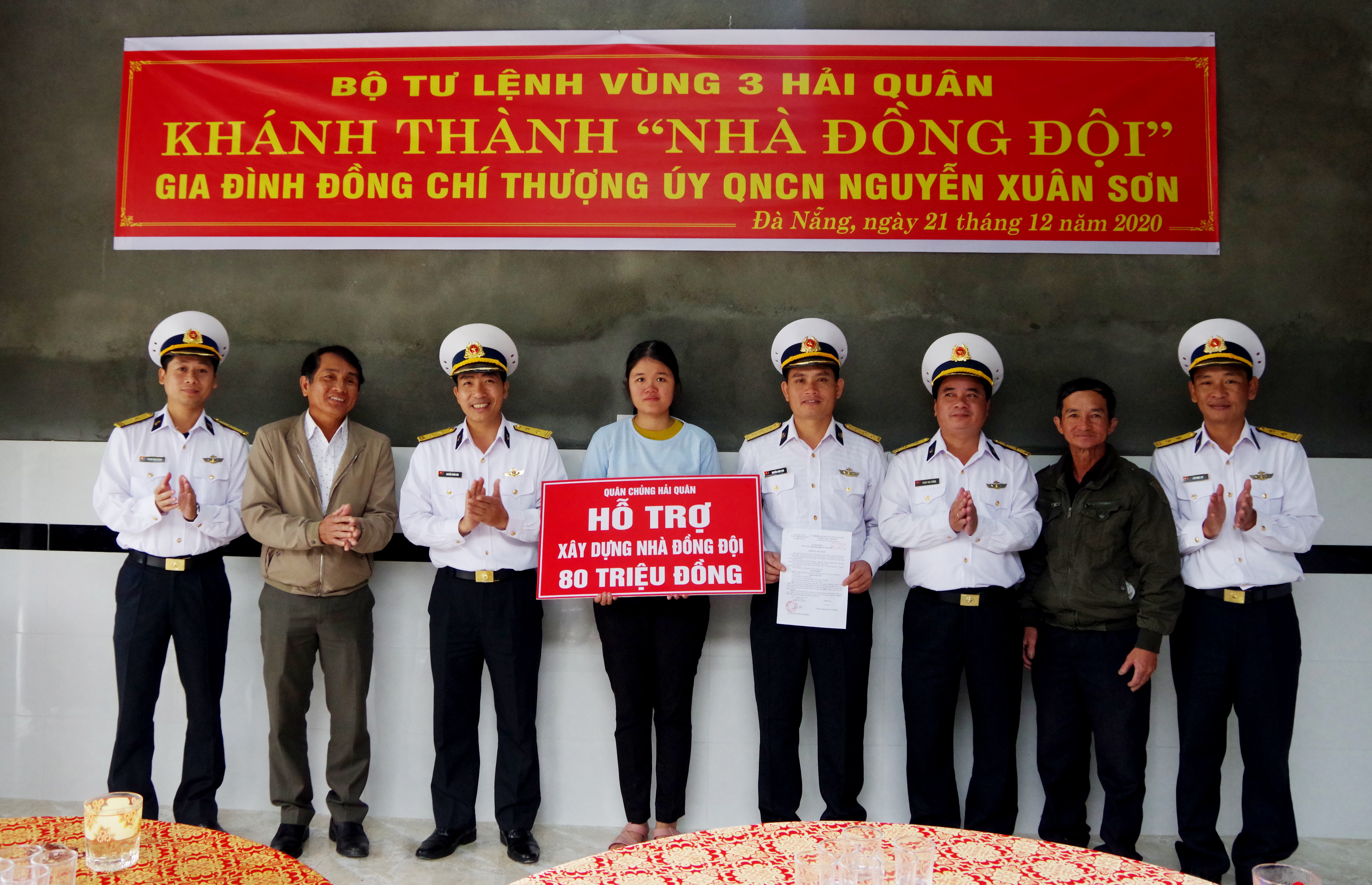 Ngày 21-12, tại thôn 5, xã Hòa Khương, huyện Hòa Vang, TP. Đà Nẵng, Vùng 3 Hải quân phối hợp với chính quyền địa phương tổ chức khánh thành và bàn giao nhà đồng đội cho gia đình Thượng úy QNCN Nguyễn Xuân Sơn, Nhân viên Kho vũ khí đạn, vật tư, Trung tâm Bảo đảm kỹ thuật Vùng 3.