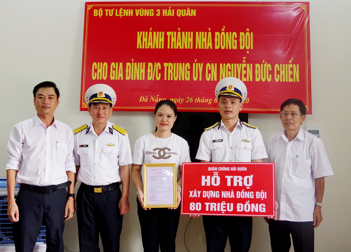 Chiều 26-6, tại tổ 25, phường Nại Hiên Đông, quận Sơn Trà, TP. Đà Nẵng, Vùng 3 Hải quân phối hợp với chính quyền địa phương tổ chức khánh thành và bàn giao nhà đồng đội cho gia đình Trung úy QNCN Nguyễn Đức Chiến, Nhân viên Ban hành chính, Phòng Tham mưu Vùng 3 Hải quân.